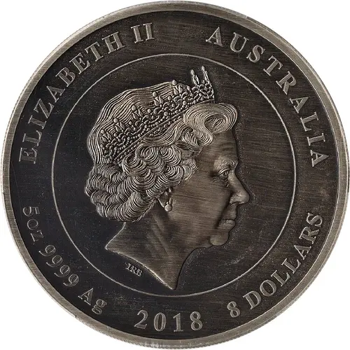 ELIZABETH II AUSTRALIA IRB 5OZ 9999 Ag 2018 8 Dollars |