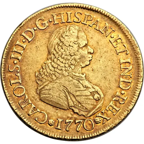 | 表面の銘文 | CAROLS III D G HISPAN ET IND REX 1770 (Translation: Carlos III By the Grace of God King of Spain and the Indies) |