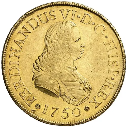 | Leyenda del anverso | FERDINANDUS VI D G HISP REX 1750 (Translation: Ferdinand VI King of the Spains by the grace of God) |