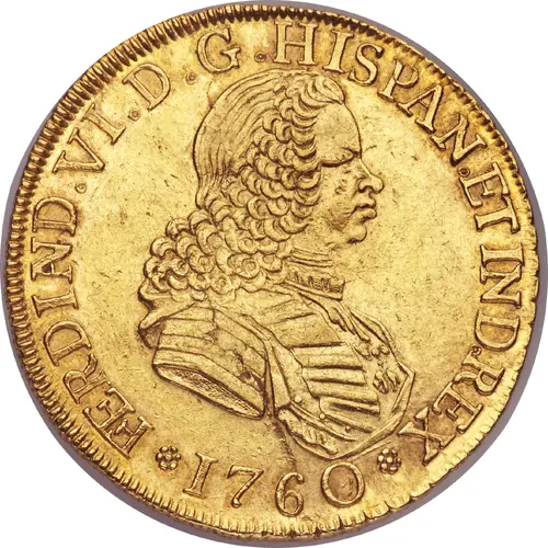 | Obverse lettering | FERDIND VI D G HISPAN ET IND REX 1760 |
