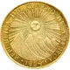 Obverse description Radiating sun with face above a row of five volcanoes. With legend around and date at bottom.