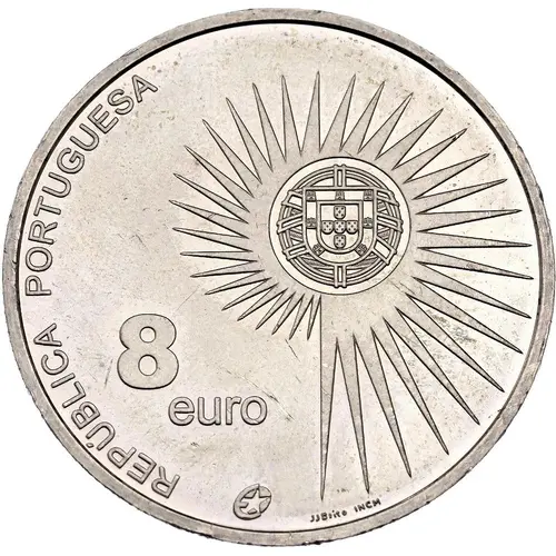 | Obverse lettering | REPÚBLICA PORTUGUESA 8 euro JJ Brito INCM |