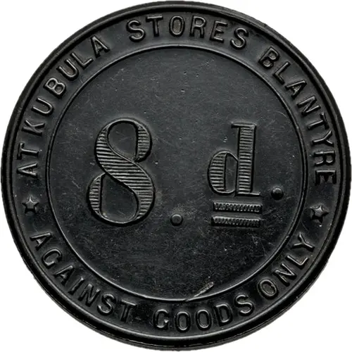 | Obverse lettering | AT KUBULA STORES BLANTYRE 8. d. AGAINST GOODS ONLY |