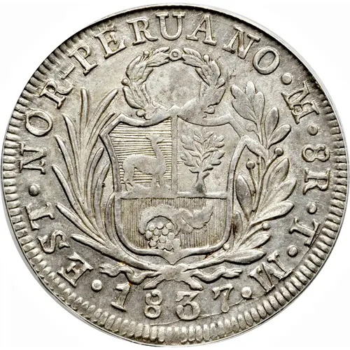 | Obverse lettering | EST · NOR-PERUANO · M · 8R · T · M |