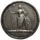 Matron standing (Madrid) holding a royal banner with her right hand and supporting the shield with her left hand the arms of the city of Madrid. Latin legend around and in exergue on three lines with date. |