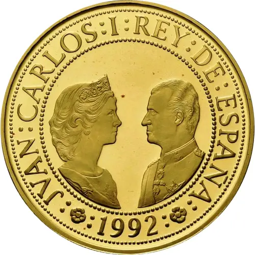 | Obverse lettering | :JVAN:CARLOS:I:REY:DE:ESPAÑA: :1992: (Translation: Juan Carlos I King of Spain) |