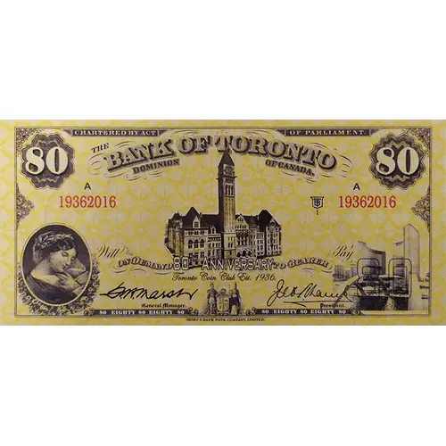 80 Dollars - Bank of Toronto Toronto Coin Club