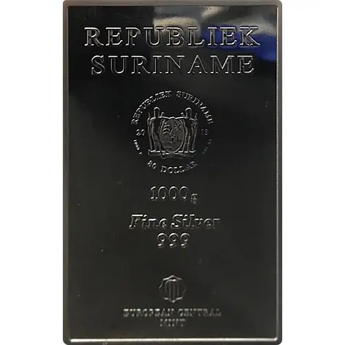 Legenda del dritto REPUBLIEK SURINAME REPUBLIEK SURINAME JUSTITIA PIETAS FIDES 2013 80 DOLLAR 1000 g Fine Silver 999 EUROPEAN CENTRAL MINT
