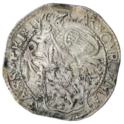 | Obverse description | Knight standing to left with head right, in armor and draped, wearing an ornate crest; in front of him a lion shield dividing legend. |