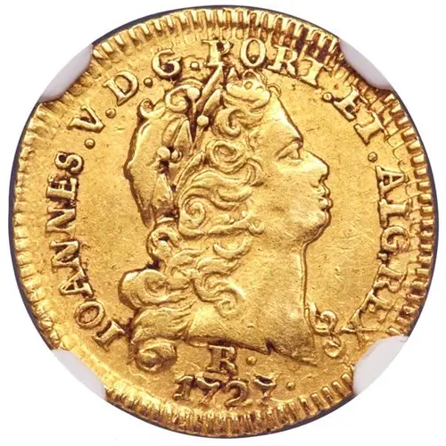 | Obverse lettering | IOANNES. V. D. G. PORT. ET. ALG. REX. R 1727 (Translation: João V, by the Grace of God, King of Portugal and Algarves.) |