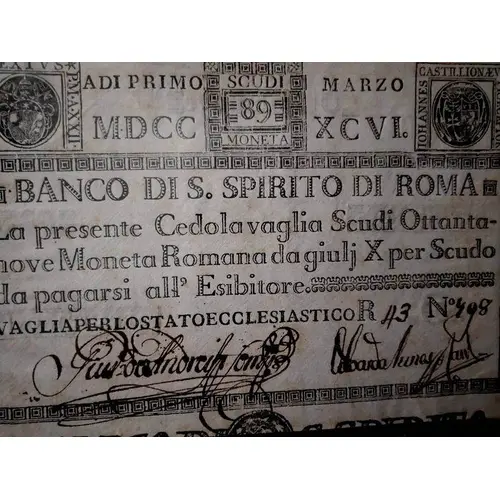 89 Scudi Bank of the Holy Spirit of Rome - Pope Pius VI