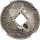 Obverse description Countermark Crowned G on obverse and reverse of Mexico 8 Reales, KM#110 with crenated square hole.