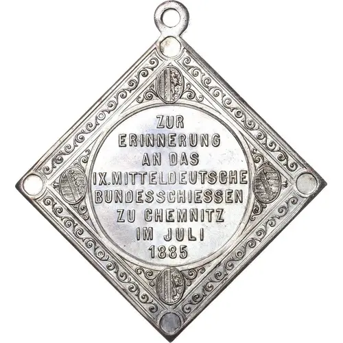 | Obverse lettering | ZUR ERINNERUNG AN DAS IX. MITTELDEUTSCHE BUNDESSCHIESSEN ZU CHEMNITZ IM JULI 1885 |