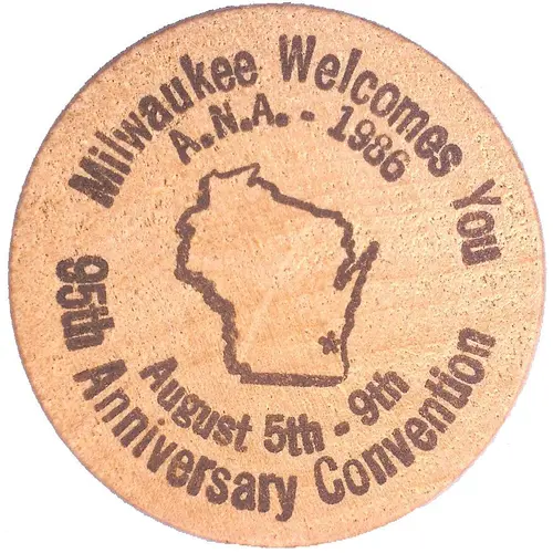 | Obverse lettering | Milwaukee Welcomes You A.N.A. - 1986 August 5th - 9th 95th Anniversary Convention |