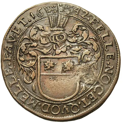 | Obverse description | Arms below a helm. Divided date on top. |