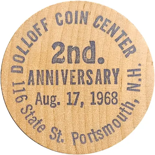| Averslegende | DOLLOFF COIN CENTER 2nd. ANNIVERSARY Aug. 17, 1968 116 State St. Portsmouth, N.H. |
