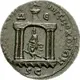 Tetrastyle temple of Tyche of Antioch, river-god Orontes swimming at her feet; above shrine, ram leaping right, head left. |
