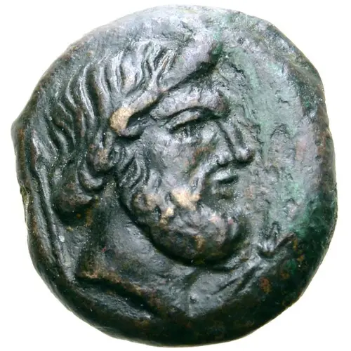 | Descripción del anverso | Laureate head of Zeus right; spear behind and thunderbolt before. |