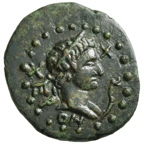 | Aversbeschreibung | Laureate head of Chersonas to right; to right, star above serpent. |