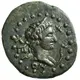 | Reversbeschreibung | Nike advancing left, holding wreath in her right hand and palm frond in her left; to left, monogram. |