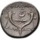 | Reversbeschreibung | Two cornucopias, each bound with fillet; between, star-in-crescent above winged thunderbolt. |