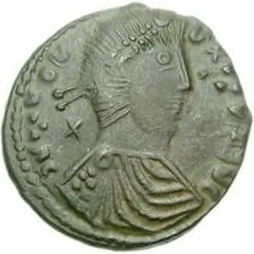 | Obverse description | Pearl-diademed, draped, and cuirassed bust facing right and surrounded by nonsensical legend. |
