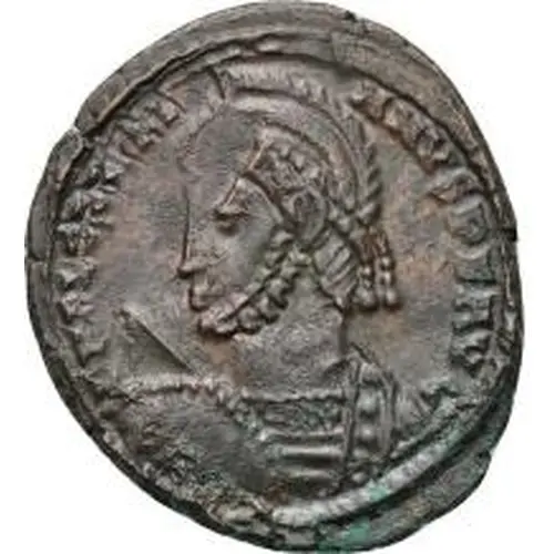 | Obverse description | Helmeted, draped, and cuirassed bust facing left and surrounded by nonsensical legend. |