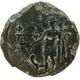 Reverse description Dionysos standing left, holding grape bunch and thyrsos; to lower left, panther seated left, raising forepaw; monogram to right.