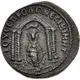 | Reverse description | Temple with arched pediment and four columns enclosing draped, veiled and turreted statue of Tyche seated, with ram leaping right above her. River god swimming right below. |