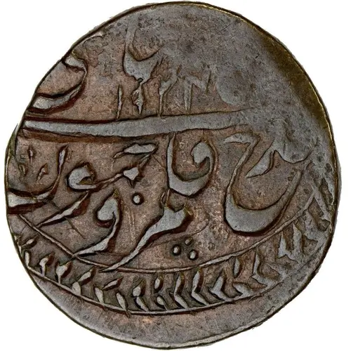Obverse description Persian lettering in multiple lines, with toothed pattern around.