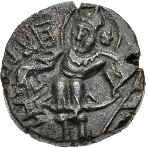 | Descripción del anverso | Toranama standing slightly left, sacrificing over altar and holding trident |