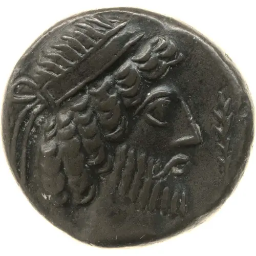 Head of Attambelos to right, diademed, bearded, wheat stalk in right field. |