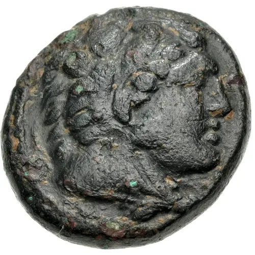 | Description de l’avers | Head of beardless Heracles right wearing lion skin headdress. |