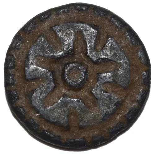 | Aversbeschreibung | The Dharmachakra (wheel) symbol. |