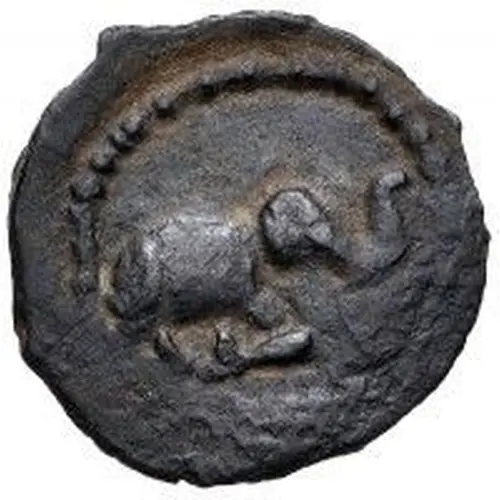 | Opis awersu | Elephant moving right with raised trunk, denticled border. |