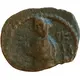 Shaqilath standing left, veiled, wearing long chiton, right hand raised; on left, wreath. In right field, Aramaic lettering over three lines. |