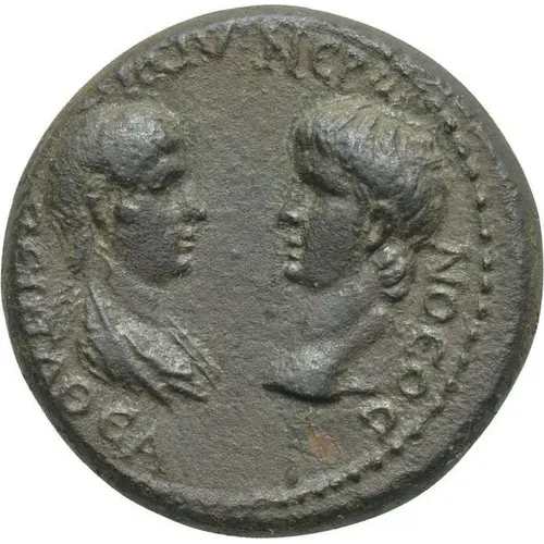 | Obverse description | Draped bust of Agrippina right, facing bare head of Nero left |