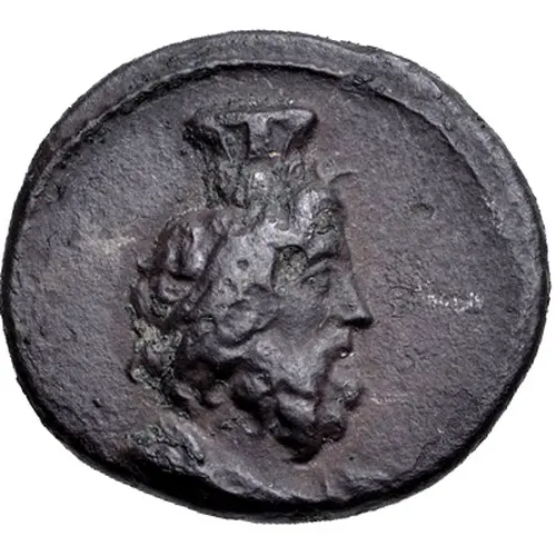 Obverse description Laureate and draped bust of Sarapis facing right, wearing kalathos
