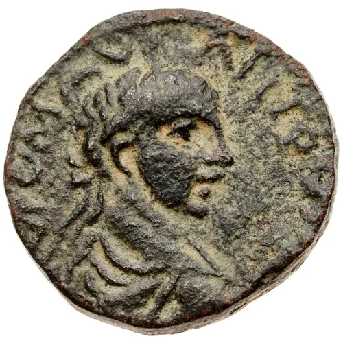 Obverse description Laureate, draped and cuirassed bust of Elagabalus, right, seen from rear.