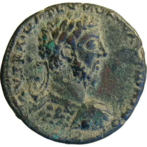 | 表面の説明 | Laureate-headed bust of Commodus wearing cuirass, right. |