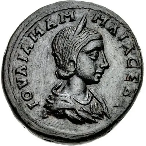 IOYΛIA MAMAIA CEBA (Translation: `Julia Mamaea, Venerable`) |
