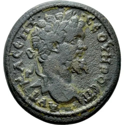 AVT K Λ CEΠT CEOVHPOC Π (Translation: (Αυτοκράτωρ Καίσαρ Λυκιος Σεπτίμιος Σεβήρος Παρθηκος) `Emperor Caesar Lucius Septimius Severus Parthicus`.) |