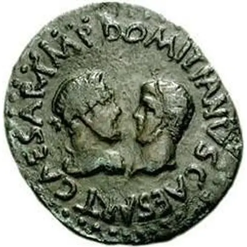 | Opis awersu | Laureate and draped bust of Titus, right, seen from rear, facing head of Domitian, left. |