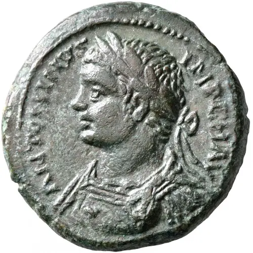 | Description de l’avers | Laureate and cuirassed bust left; Medusa head on breastplate. |