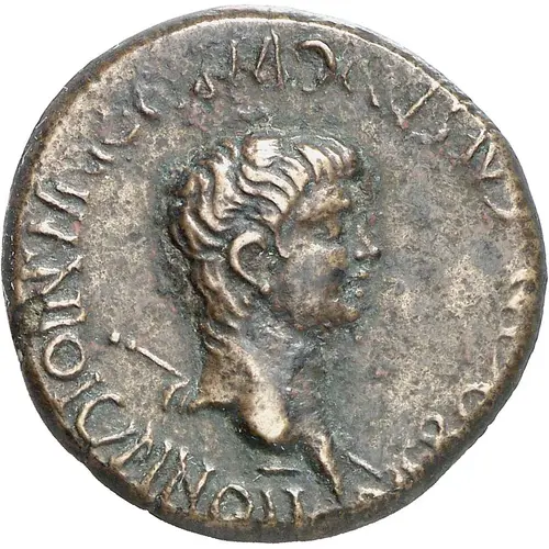 NERO CLAVD CAES AVG IMP ET OCTAVIA AVGVSTI (Translation: Nero Claudius Caesar Augustus, emperor, and Octavia wife of Augustus) |