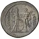 Reverse description Athena right, helmeted, resting with her right on spear, and left on round shield facing Hermes, left, naked but for chlamys on left arm, holding purse in right, caduceus in left.