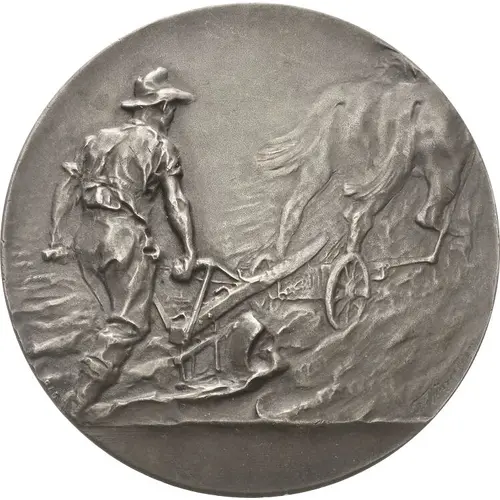 | Descrizione del dritto | Farmer behind a plow pulled by two horses. |