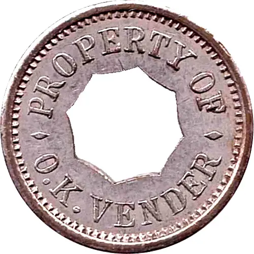 | Obverse lettering | PROPERTY OF O.K. VENDER |