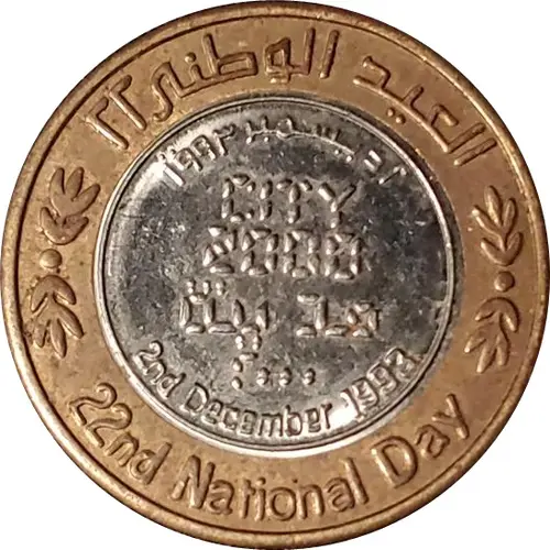 | Obverse lettering | العيد الوطنى ٢٢ ٢ ديسمبر ١٩٩٣ CITY 2000 مدينة ٢٠٠٠ 2nd December 1993 22nd National Day |