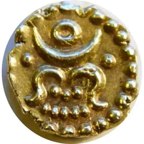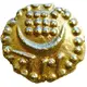 | Mô tả mặt trước | Design evolved from kaliyan fanams of South east India. Chuckram within a large crescent above vishnupadam (feet of Lord Vishnu) that is represented by two curved lines and 10 pellets,for the toes. |